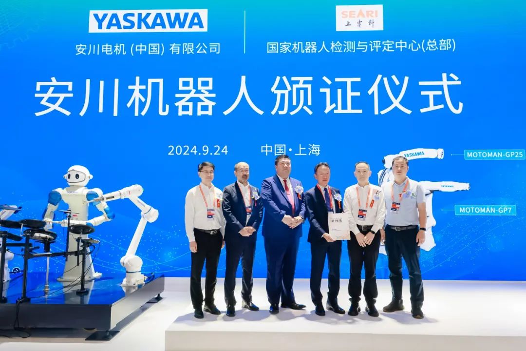 9月24日,2024中国国际工业博览会盛大开幕。开展首日,国家机器人检测与评定中心(总部)【简称:国评中心总部】为安川电机(中国)机器人有限公司【简称:安川】GP25及GP7两款产品颁发机器人洁净级认证证书。