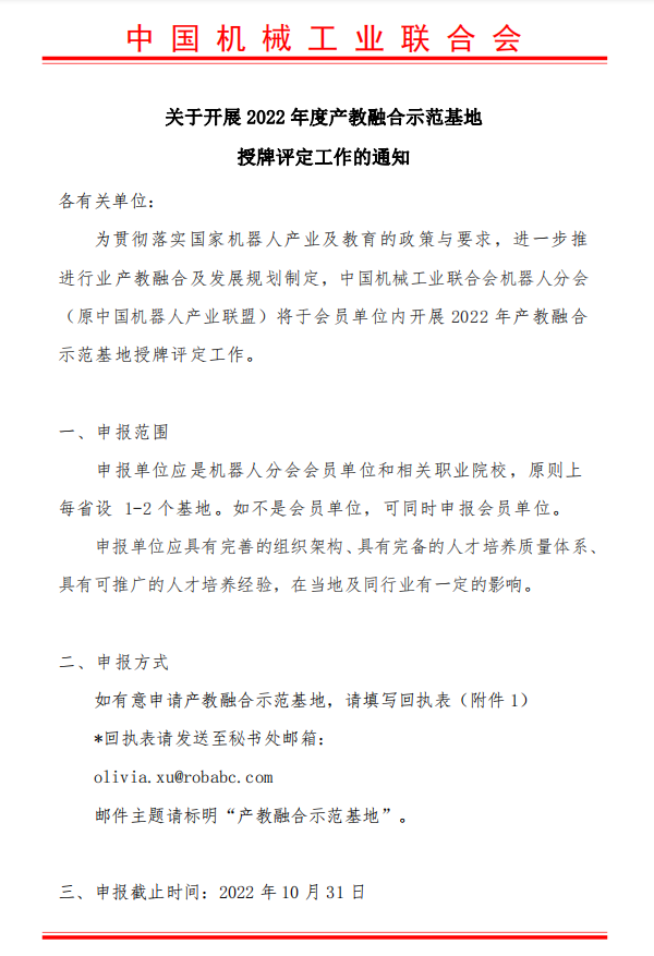关于开展 2022 年度产教融合示范基地授牌评定工作的通知
